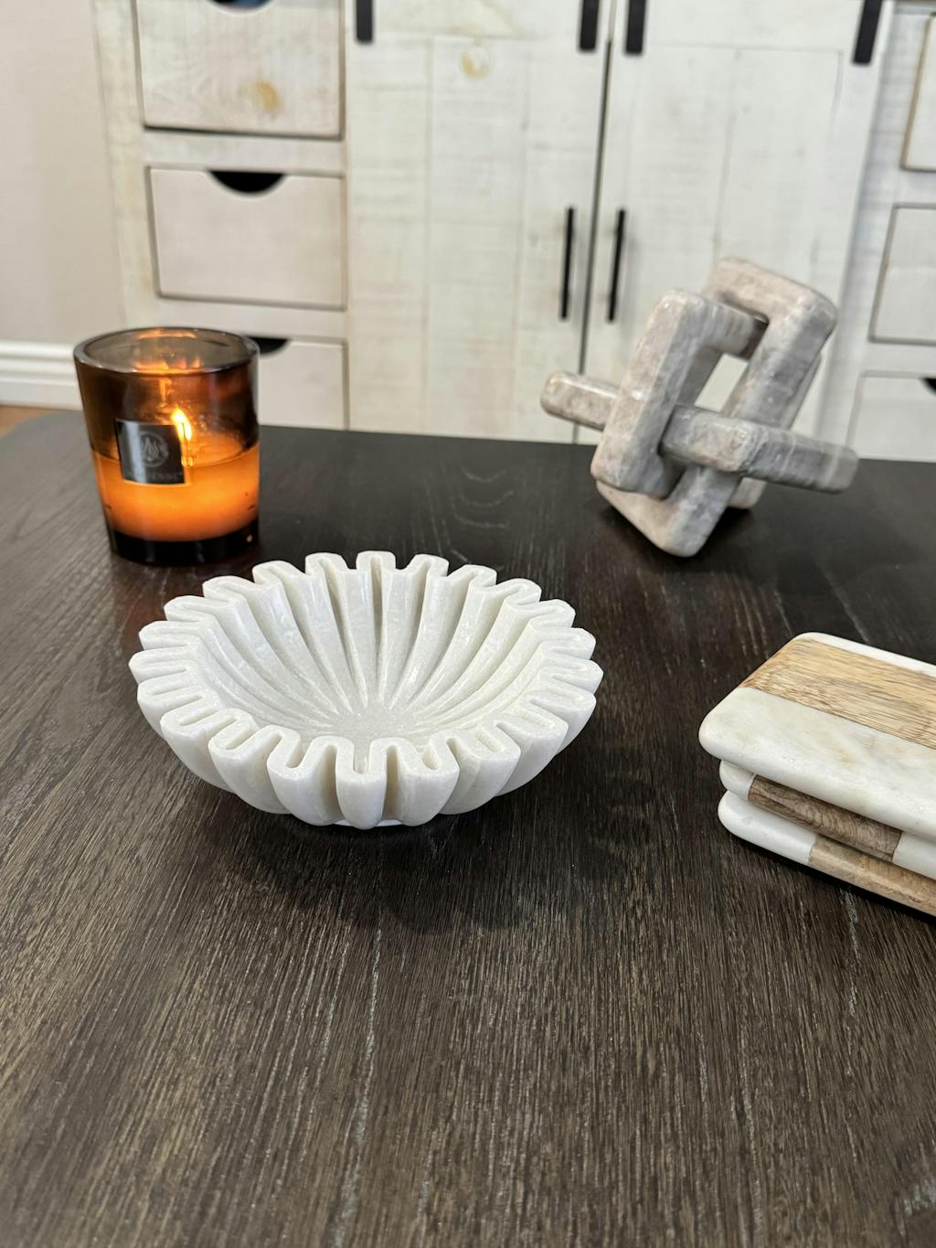 - Place the candle on a heat resistant surface or candle tray.